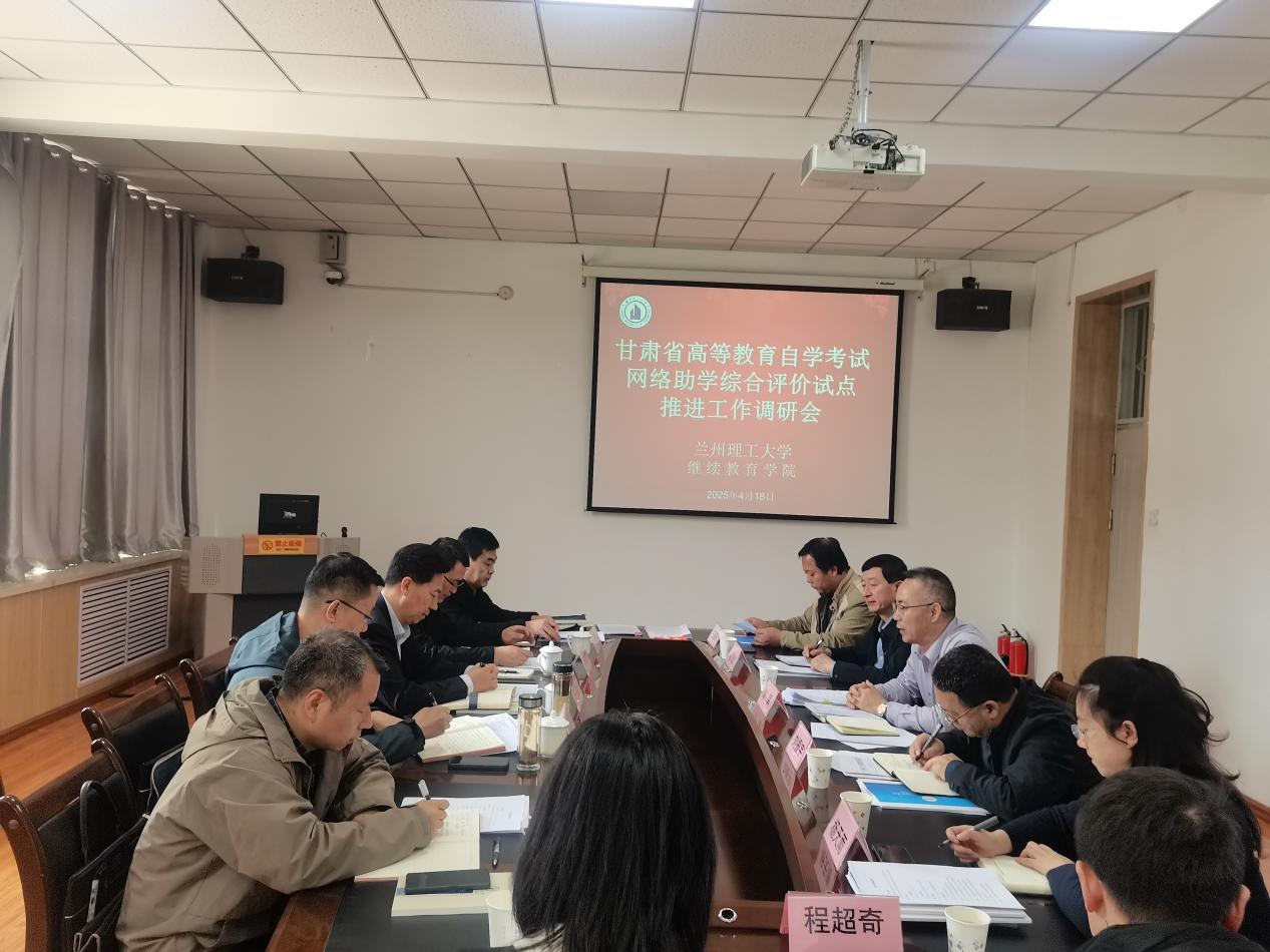 4月18日下午,甘肃省教育考试院自考处处长杜刘家一行来我校就高等教育自学考试网络助学综合评价试点工作展开深入调研座谈。继续教育学院院长刘军、副院长刘振宇、相关部门负责人、学成助学点工作人员以及深圳市学到在线教育科技有限公司技术人员参加。