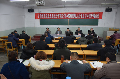 1月3日上午8点半,甘肃第七建设集团股份有限公司中高级管理人员专业能力提升培训班在我校继续教育学院举行开班仪式。甘肃第七建设集团股份有限公司总经理闫汝刚、人力资源部部长张晓柏,兰州理工大学土木工程学院院长周勇、兰州理工大学继续教育学院副院长雒军出席开班仪式。甘肃第七建设集团股份有限公司中高级管理人员34人参加开班仪式。会议由继续教育学院培训二部主任马贞生主持。