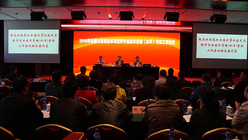 2016年3月24-25日,工业和信息化部教育与考试中心(以下简称工信部教育考试中心)组织召开了2016年全国计算机技术与软件专业技术资格(水平)考试(以下简称计算机软件资格考试)工作会议。工信部教育考试中心主任徐玉彬、副主任周明、考务处全体工作人员以及来自全国各省(自治区、直辖市)计算机软件资格考试管理实施机构的代表参加会议。