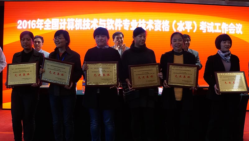 会议表彰了2014-2015年度计算机软件资格考试先进集体和先进个人,北京、广东等15家考试机构获得了先进集体称号,53名全国各级考试机构的工作人员获得了先进个人称号。福建电子信息教育中心、西藏自治区人事考试中心、陕西省软考办、济南市人事考试中心考务管理工作人员分别代表先进集体和先进个人在会上作了发言,并同与会代表分享了在计算机软件资格考试考务管理工作中的经验。