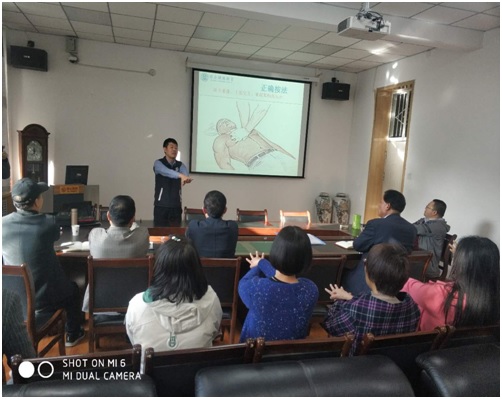 为进一步提高我院广大干部职工的健康意识,普及健康保健知识,建立科学、健康、文明的生活方式,1021日上午,甘肃省安全康健教育网杨彦军老师,为我院职工进行 “推动康健甘肃共建幸福生活” 专题讲座,讲解预防和应对公共卫生安全事故的科学常识及心肺复苏等常规急救技能、心脑血管、肩周炎、颈椎病等常见疾病的相关防治知识。